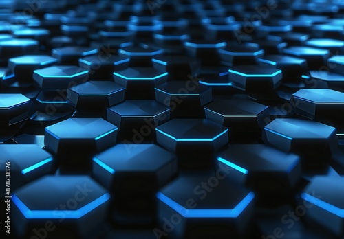 © Koihime, Obraz premium abstract blue background with hexagonal bubbles, Abstract technology futuristic hexagon overlapping pattern with blue light effect