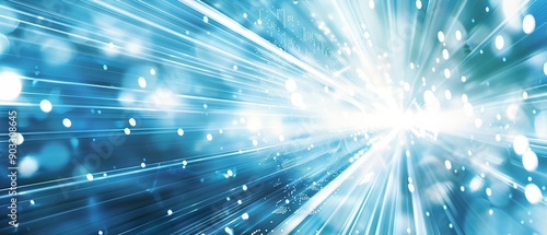 © Koplexs-Stock, Fototapeta premium Abstract Blue Background with White Bokeh Lights and Blurry Lines