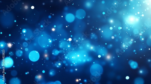 Obraz premium Abstract blue bokeh background with glowing particles and lights.