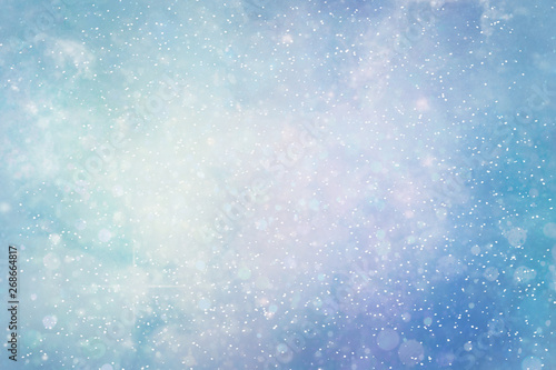 © Shcherbyna, Fototapeta premium abstract blue bokeh defocused background. Winter with snow