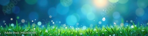 Obraz premium Abstract blue bokeh garden, sparkling grass & sky gradient , sparkle, business, poster