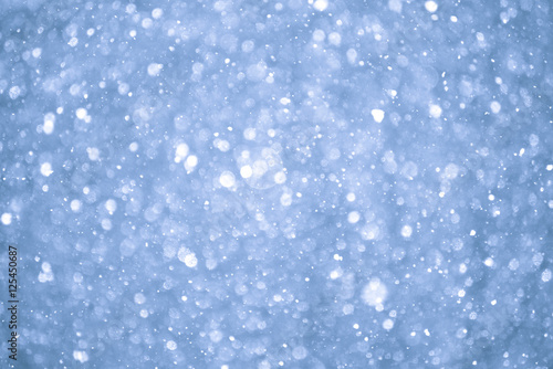 Obraz premium Abstract Blue Christmas Background with Real Snow. Blurred Snowflakes.