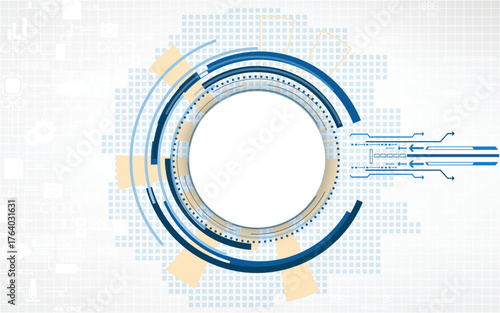 Obraz premium Abstract blue circles geometric technology background. Abstract Geometric Technology Background, Digital Hi-Tech Innovation Design with Circle Elements