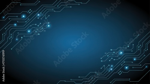 Fototapeta premium Abstract blue circuit board technology background with copy space