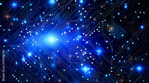 Fototapeta premium Abstract Blue Circuit Board with Glowing Lights