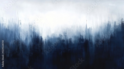 © Sleeping Carbuncle, Obraz premium Abstract Blue Cityscape Painting