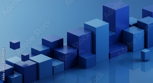 © AI Photo Stock, Obraz premium Abstract Blue Cube Composition - A visually appealing arrangement of blue cubes, creating an abstract and modern design. Ideal for backgrounds, presentations, and tech themes