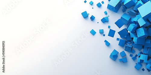 Fototapeta premium Abstract Blue Cubes Scattered On White Background