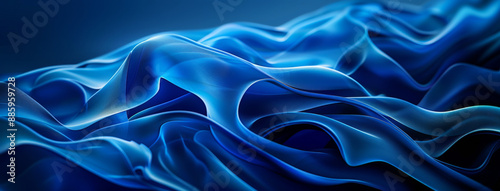 Obraz premium Abstract blue curved wave background with soft light and shadow, dark color,...