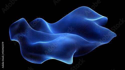 © suparlin, Obraz premium Abstract Blue 3D Mesh Wave on Black Background