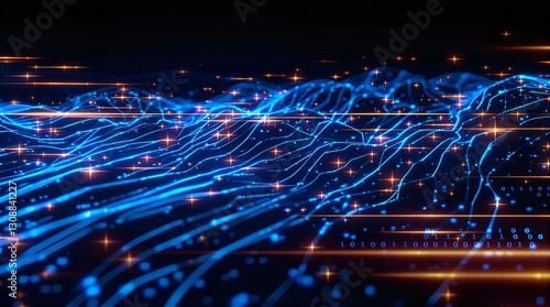 Fototapeta premium Abstract Blue Data Stream: Digital Network Visualization with Flowing Light...