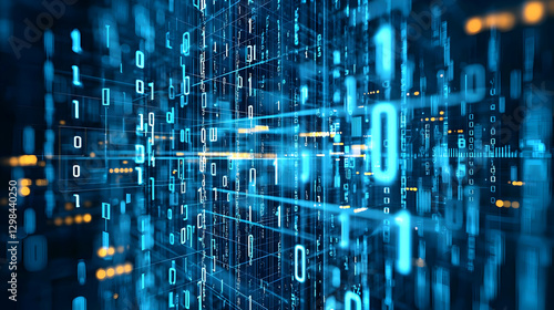 © julio, Obraz premium Abstract Blue Digital Data Flow Depicting Binary Code And Technological Network Systems