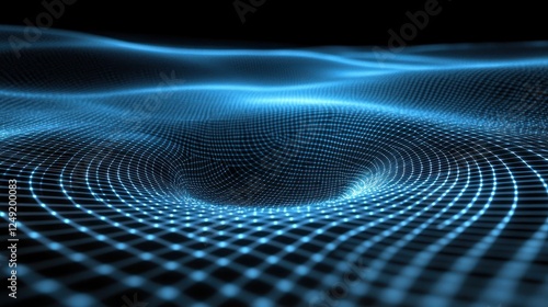 Obraz premium Abstract blue digital landscape with glowing grid and vortex.