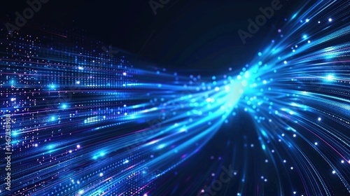 © Molly P, Obraz premium Abstract blue digital network background with lines and nodes. Digital artwork of glowing digital wave waving and flowing at black background. Technology innovation and data visualization. AIG55.