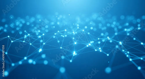 © Lilufa, Fototapeta premium Abstract blue digital network connection background with dots and lines for technology concept use