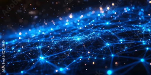 © PLATİNUM, Fototapeta premium Abstract Blue Digital Network Connections with Glowing Points and Lines