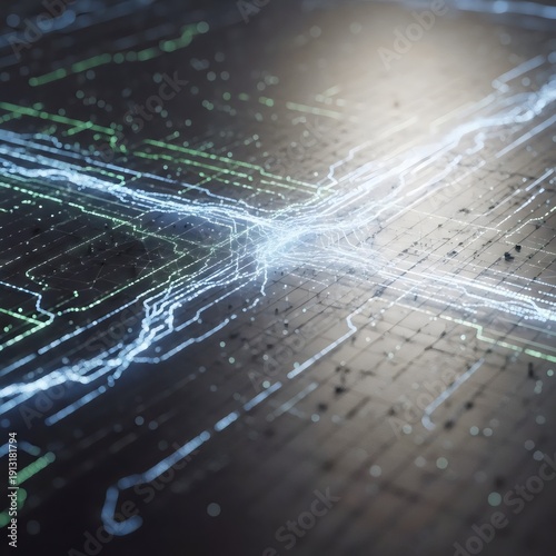 © Penguin Studio, Obraz premium Abstract Blue Digital Network with Data Points and Connecting Lines