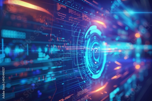 Obraz premium Abstract Blue Digital Tech Interface With Glowing Lights background