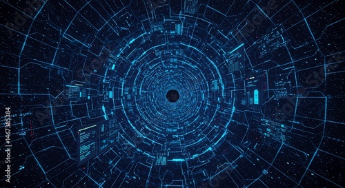 © Minh, Obraz premium Abstract Blue Digital Tunnel Background