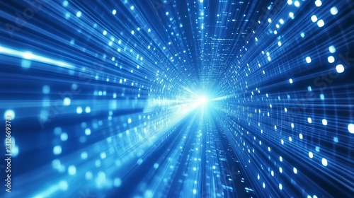 © Harry, Naklejka premium Abstract Blue Digital Tunnel Light Rays Speed Technology Background Futuristic Network Data Stream Bright Sparkling Glowing Lines Modern Design
