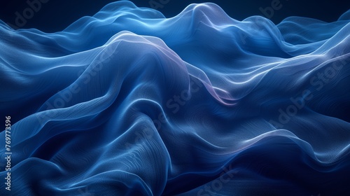 Obraz premium Abstract blue fabric waves on dark background