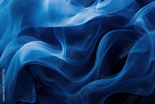 © NArts, Obraz premium Abstract Blue Fabric with Intricate Waves and Texture