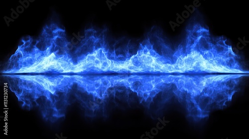 © Bejo Studio, Fototapeta premium Abstract blue flames reflected on a dark surface.
