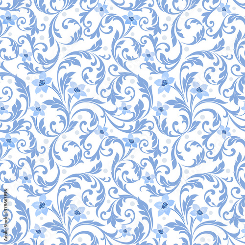 © teerawat, Fototapeta premium Abstract blue flowers ornament seamless pattern. can use for fabric textile wallpaper.