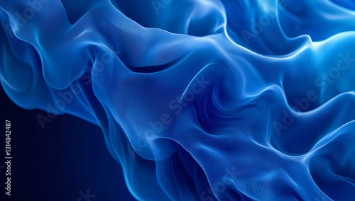 © Moritz, Fototapeta premium Abstract blue flowing wave with particles, futuristic digital energy stream, smooth dynamic motion illustration with transparent background and copyspace