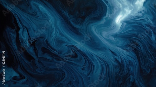 © Lee, Obraz premium Abstract Blue Fluid Art with Dynamic Swirls and Cosmic Sparkles