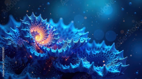 Obraz premium Abstract Blue Fractal Formation with Glowing Core and Intricate Details