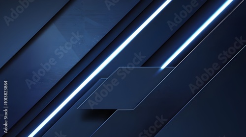 © Daniel, Obraz premium Abstract Blue Geometric Background with Glowing Lines