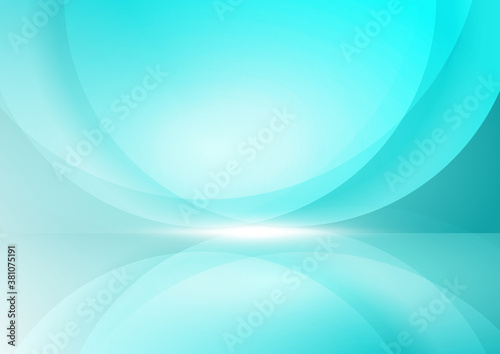 © Pramote, Obraz premium Abstract blue geometric circles overlapping background with light blue.