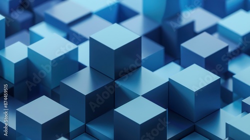 © Skyfe, Obraz premium Abstract Blue Geometric 3D Cubes Background for Technology and Design Projects