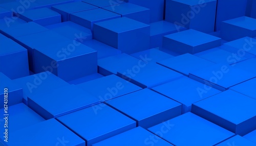 © oky, Fototapeta premium Abstract blue geometric pattern of interlocking cubes