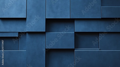 Naklejka premium Abstract Blue Geometric Wall Subtle Shadows Deep Texture. AI Generated