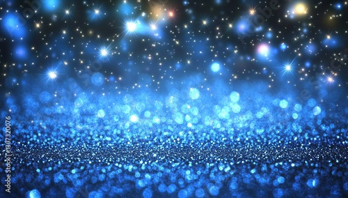 © hore, Fototapeta premium Abstract blue glitter background with bokeh lights, shiny and sparkling texture for elegant design