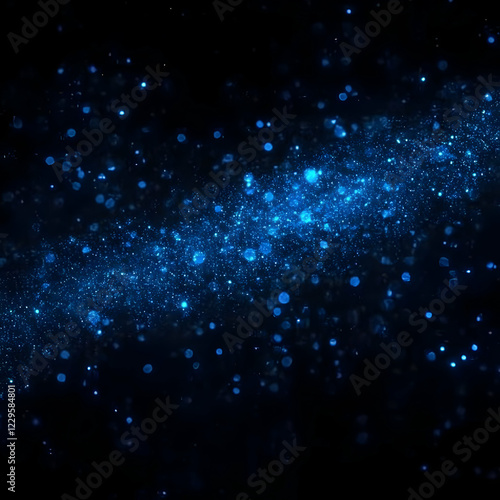 Fototapeta premium Abstract blue glitter sparkles on a dark background, creating a magical and...