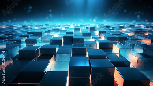© nurionstudio, Obraz premium Abstract blue glowing cubes background.