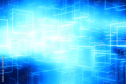 © Shawn Hempel, Obraz premium Abstract blue glowing cyberspace data boxes technology background
