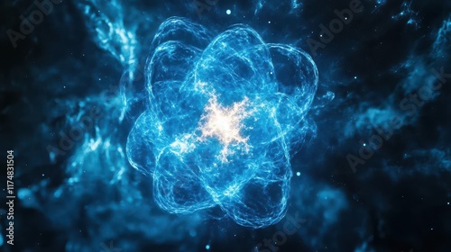 Obraz premium Abstract blue glowing energy core with a bright center in dark background