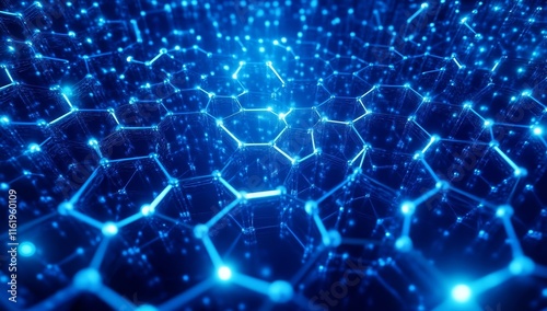 © POV Studio, Obraz premium Abstract blue glowing hexagonal network background.