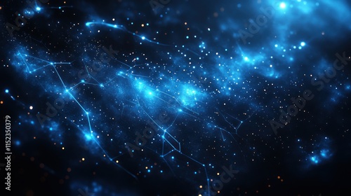 Fototapeta premium Abstract blue glowing nebula with interconnected nodes and particles, cosmic...