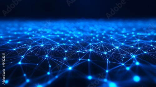 © Tackey, Fototapeta premium Abstract blue glowing network lines and nodes technology background, representing data transfer and digital connectivity.