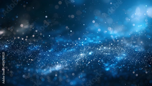 © FEEZAN ALI, Fototapeta premium Abstract blue glowing particles background with a bokeh effect