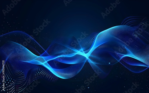 © Asif, Obraz premium Abstract blue glowing wave line with light effect on dark background for technology and digital concept vector illustration, AI digital wallpaper design