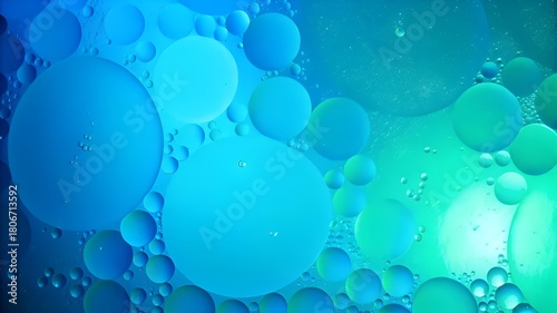 © Raj, Obraz premium Abstract Blue Green Oil Bubbles Creating Fluid Circles And Oceanic Light Texture For Imagery