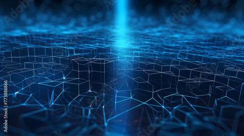 © Derby, Obraz premium Abstract blue grid, blockchain background