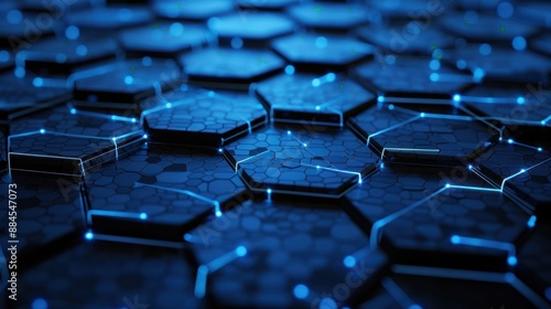 Obraz premium Abstract Blue Hexagon Pattern with Glowing Lines