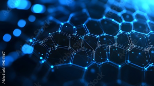 Obraz premium Abstract Blue Hexagon Pattern with Glowing Lines and Dots